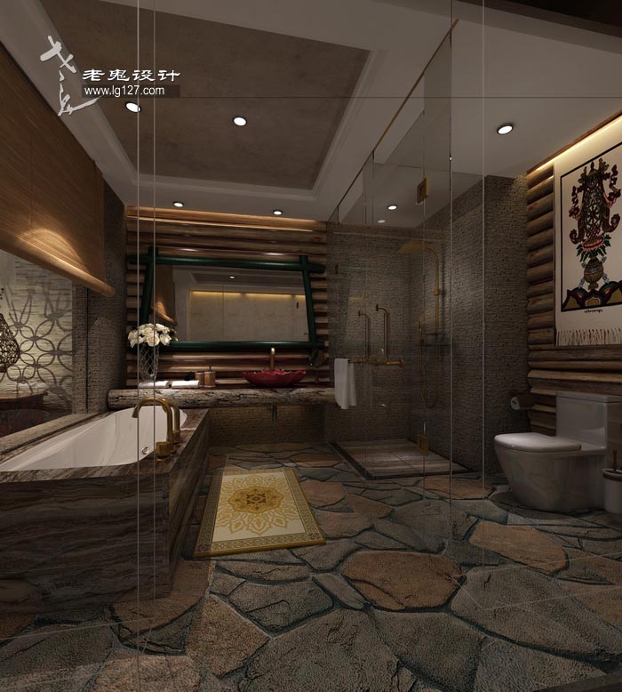 漆刷著淡雅色彩的實木家具,帶來的是全新的視覺體驗,這是在現(xiàn)代酒店中常常被人所忽視的??臻g如畫,色彩的運用是極為重要的。傳統(tǒng)酒店房間的冰冷色彩,對于入住者來說,實則是極其糟糕的身心體驗。此外,我們團隊選擇在不同的客房內(nèi)搭配不同風格情調(diào)的裝飾畫,以進一步襯托出“家”的味道。在客房里,沙發(fā)休閑區(qū)的設計,將每位入住者從床上喚醒,讓每位入住者體會到客房的功能不僅僅是睡覺,還有別的體驗等待著每個人去感受。值得一提的是,衛(wèi)生間的設計,同樣超乎每位入住者的預期。原生形態(tài)的石頭經(jīng)過加工處理被用于衛(wèi)生間的地板,原木的運用烘托出衛(wèi)生間足夠的品質(zhì)。
