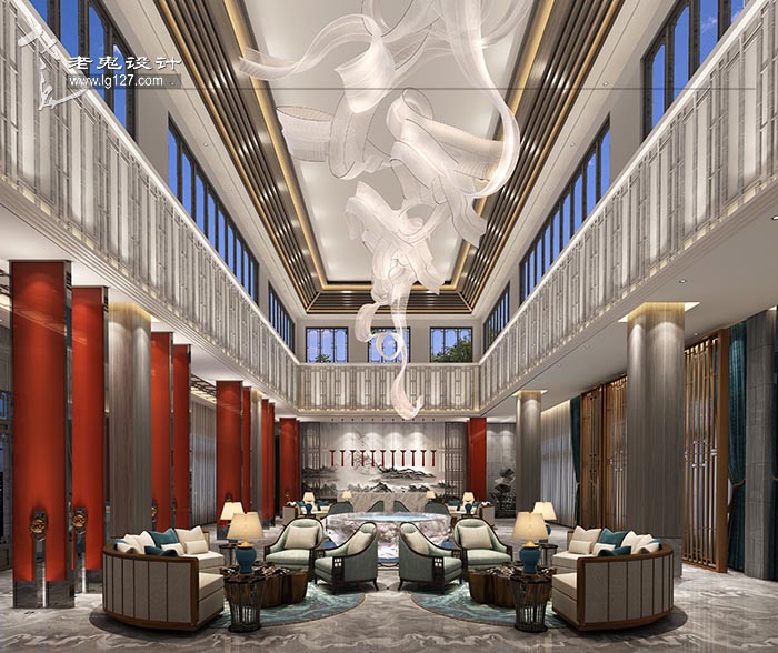 大堂天花板上掉垂的燈光設計。靈感來源于越劇水袖,那飄逸的水袖運用自如 ,柔中帶剛的呈現(xiàn),細細品味,真讓人回味無窮!