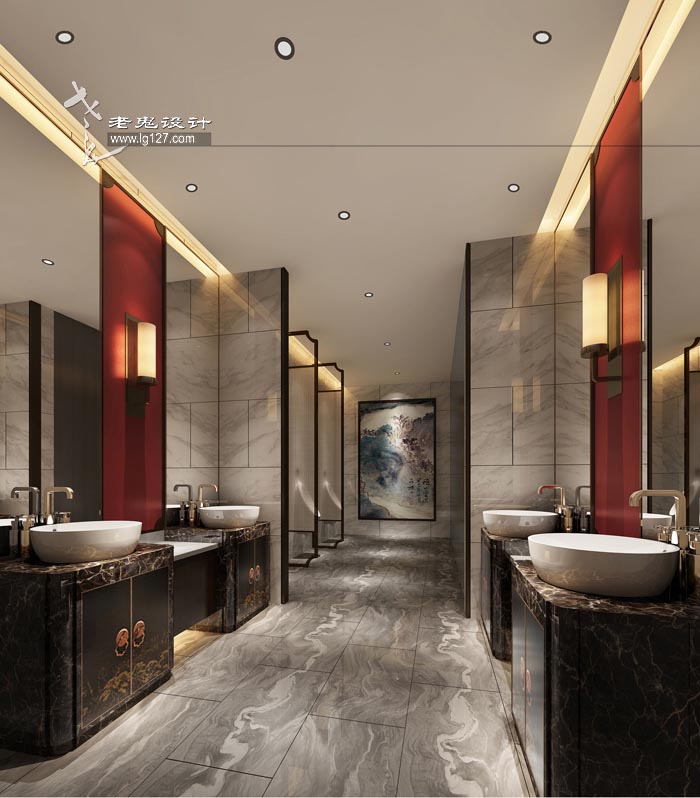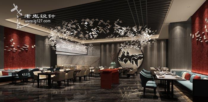 全日制餐廳的燈光設計,中國紅墻面上的魚掛件,都在朝一個方向聚集,為空間注入了靈氣與雅趣。聽,那潺潺的流水聲,將靈魂安放于此,足矣!